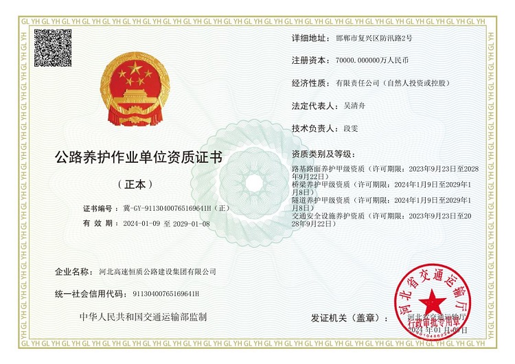 河北高速恒質(zhì)公路建設集團有限公司始建于2004年,前身是邯鄲市恒質(zhì)公路建設集團有限公司。2024年7月成為河北高速公路集團有限公司二級子公司,現(xiàn)有職工500余人,下轄18家子公司13個分公司,參股公司3家 ,注冊資本7億元,是一家集公路工程施工、路用材料研發(fā)生產(chǎn)、試驗檢測、瀝青貿(mào)易、公鐵物流于一體的多元化、綜合性單位,國家級高新技術(shù)企業(yè),河北省專精特新中小企業(yè),河北省首家瀝青拌合環(huán)保引領性企業(yè)。公司擁有公路工程總承包壹級、公路交通工程(公路安全設施)專業(yè)承包壹級、機電工程施工總承包貳級、電力工程施工總承包貳級、市政公用工程施工總承包貳級、建筑工...